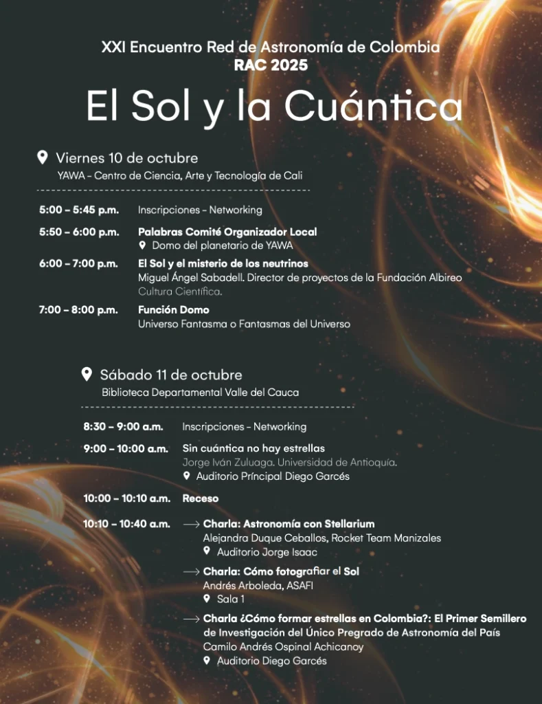 En octubre de 2025, la ciudad de Cali se convirtió en el epicentro de la astronomía en el país. Bajo el lema “El Sol y la Cuántica”, el XXI Encuentro de la RAC reunió a entusiastas, académicos y divulgadores en un viaje fascinante desde el corazón de las estrellas hasta las partículas más elementales del universo.